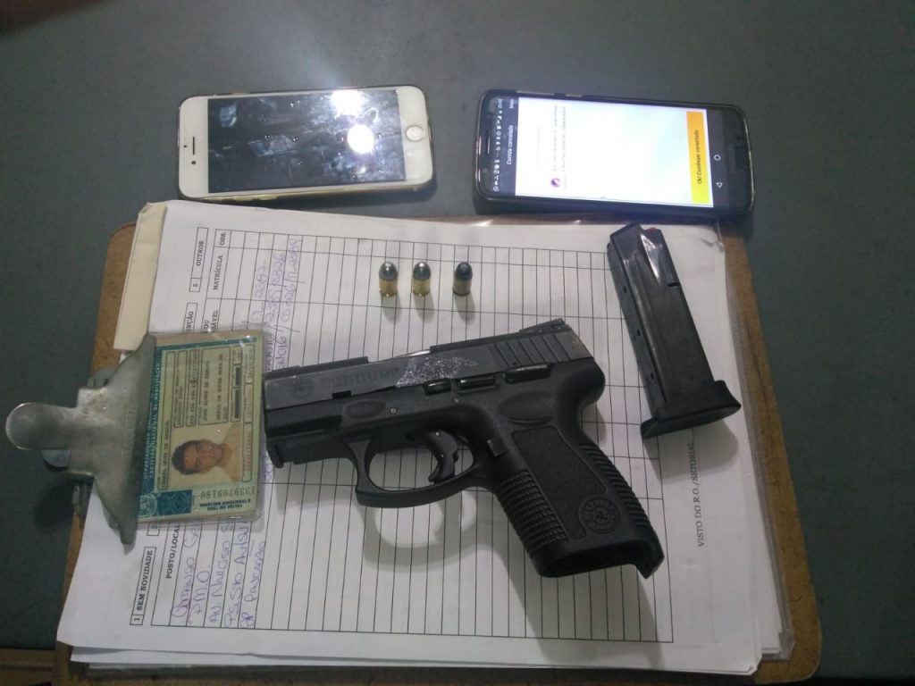 Os agentes chamaram socorro para o mesmo e durante busca por identidade do mesmo localizaram dois celulares e uma arma de fogo. O indivíduo foi socorrido no Hospital Regional pois seus ferimentos foram derivados da queda que sofreu.