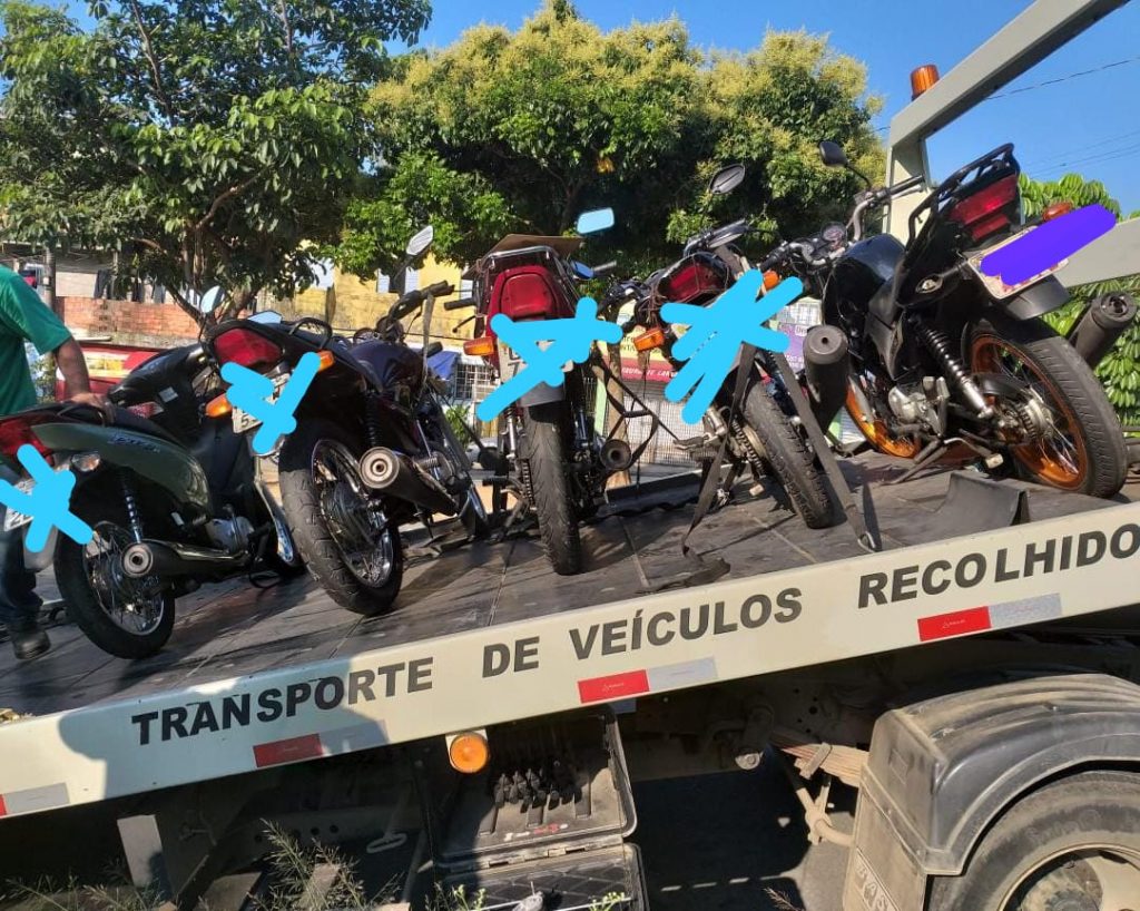 Assim os agentes fizeram a apreensão de cinco motocicletas, as quais foram encaminhadas para o pátio acompanhadas das devidas autuações.