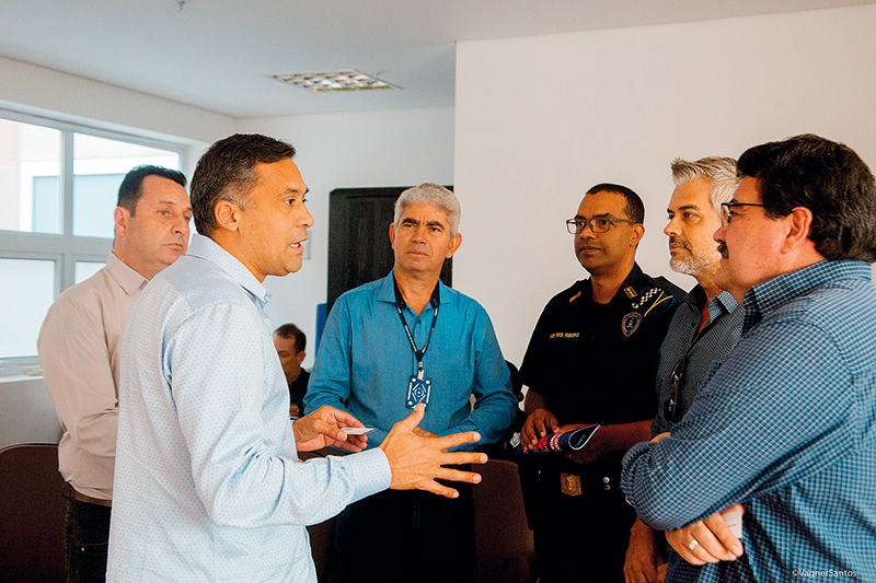A Prefeitura de Cotia tem feito grandes investimentos na área de segurança pública, nos últimos meses, adquirindo equipamentos modernos e de alta tecnologia que projetaram a cidade como referência para municípios da região. Tanto assim que, na terça-feira (14), o titular da Secretaria de Segurança Pública e vice-prefeito, Almir Rodrigues, recebeu duas comitivas de segurança, uma da cidade de Guarulhos e outra de Caraguatatuba, que vieram conhecer o sistema de segurança implantado pela gestão do prefeito Rogério Franco.