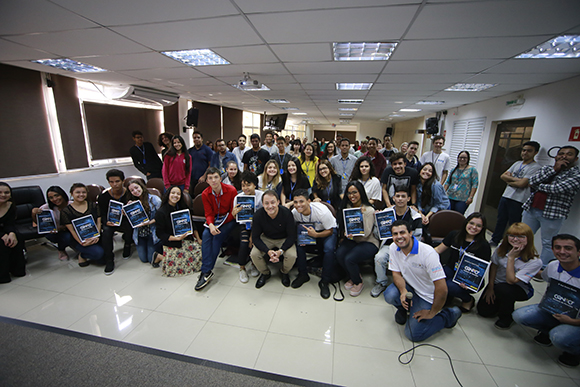Na cerimônia aconteceu a entrega dos uniformes e das novas apostilas do programa, além da premiação dos melhores TCC’s (Trabalho de Conclusão de Curso) da etapa de formação do curso e a apresentação dos 42 novos estagiários que, depois de passarem por um período de mais de dois meses de formação, com diferentes profissionais, receberão o certificado de conclusão que os habilita para aplicação das aulas de informática, sendo assim os responsáveis por ensinar as técnicas do programa aos alunos da rede municipal.
