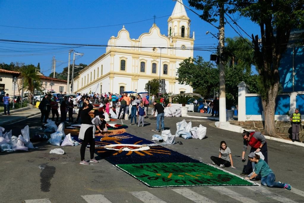 Com o passar do tempo os desenhos se completam de maneira artesanal e formam um único tapete colorido com mais de 850 metros. Ao longo do dia também era possível participar das missas, conhecer a arquitetura preservada da cidade e apreciar a gastronomia local e as feiras de artesanato.