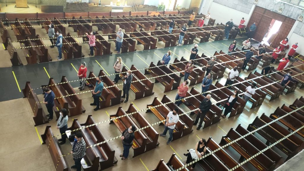 Agora existem uma série de protocolos que devem ser seguidos. Sendo assim, vá a missa com calma e disponibilidade de tempo. Você passará por uma triagem para entrar na igreja e a saída também será feita de maneira organizada. Tudo isso leva tempo e você deve se programar para “o novo normal”.