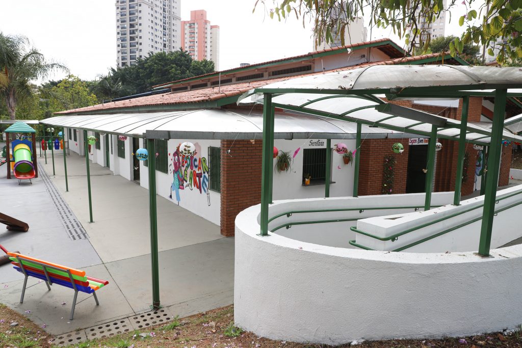 Mesmo no período em que as aulas continuam suspensas por conta da pandemia do coronavírus, a unidade recebeu mobiliário novo, como berços, camas e cadeiras de papinhas. Na parte externa, o playground ganhou casinha com escorregador e balanços de madeira.