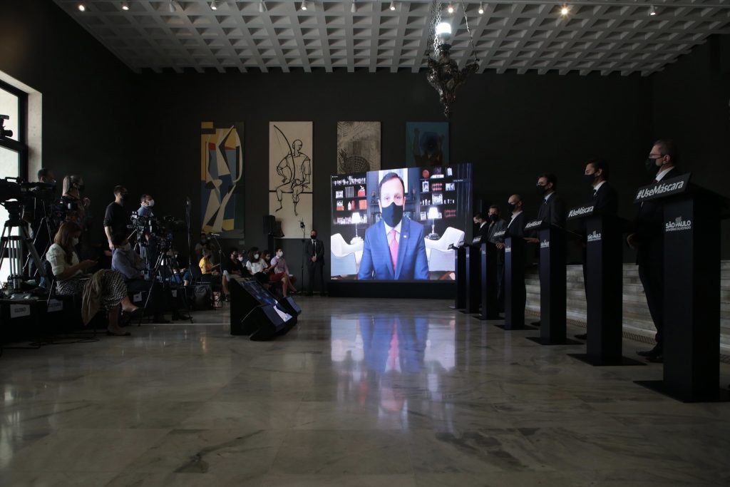 Em isolamento residencial há três dias após testagem positiva para coronavírus, o Governador João Doria fez uma pequena participação por teleconferência no início da entrevista coletiva desta sexta. Doria permanece sem sintomas e continua trabalhando de forma remota, assim como a Primeira Dama Bia Doria, que também foi infectada.