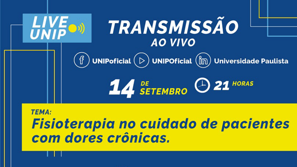 No próximo dia 14 de setembro, às 21h, os internautas terão a oportunidade de acompanhar, pelas redes sociais oficiais da Universidade Paulista, a live “A Fisioterapia no cuidado de pacientes com dores crônicas”.