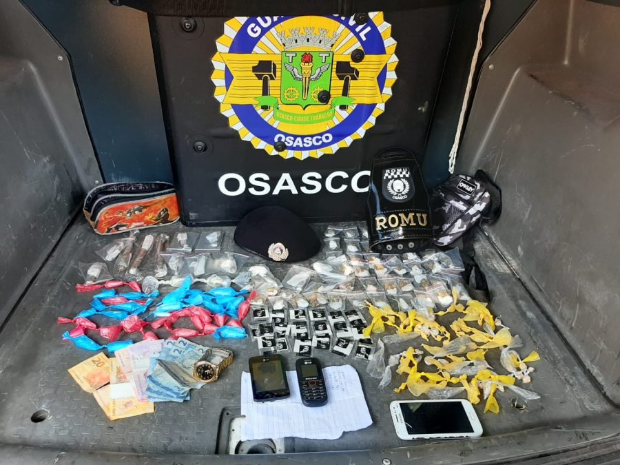 Com a dupla, a GCM apreendeu 61 invólucros de maconha, 54 eppendorfs de cocaína, 90 embalagens de crack e R$ 69.