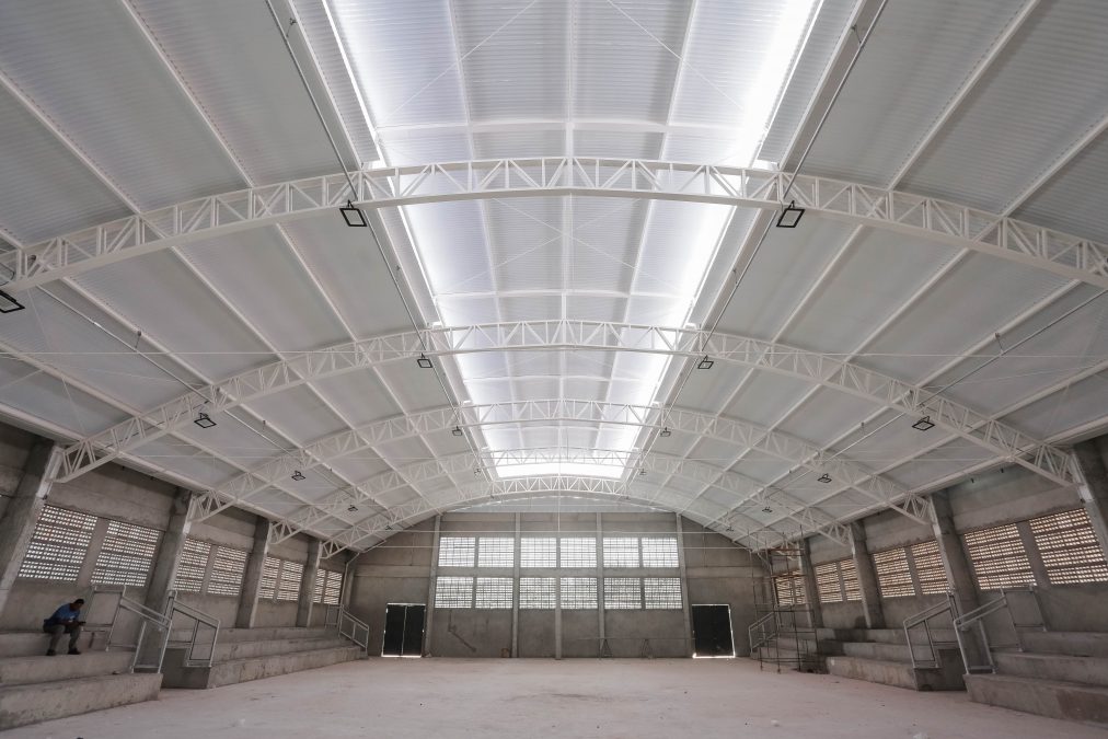 Já foram realizadas as estruturas em alvenaria, muros, revestimento em alvenaria, colocação de piso em granilite e da quadra. Na etapa final serão colocados os tampos de granito, caixilhos e portas de madeira e as finalizações das instalações hidráulicas e elétricas.