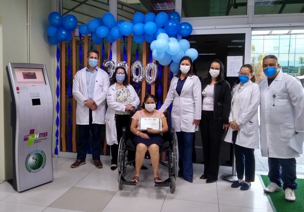 Como lembrança, foi entregue um documento simbólico pelo diretor do HMB, Paulo Tierno. “A Dona Olívia é a nossa alta número 3.000 e é com muita alegria que entrego o certificado de superação para ela. E aproveito para agradecer toda a nossa equipe por essa conquista e pelo atendimento prestado aos nossos pacientes”, declara Tierno.