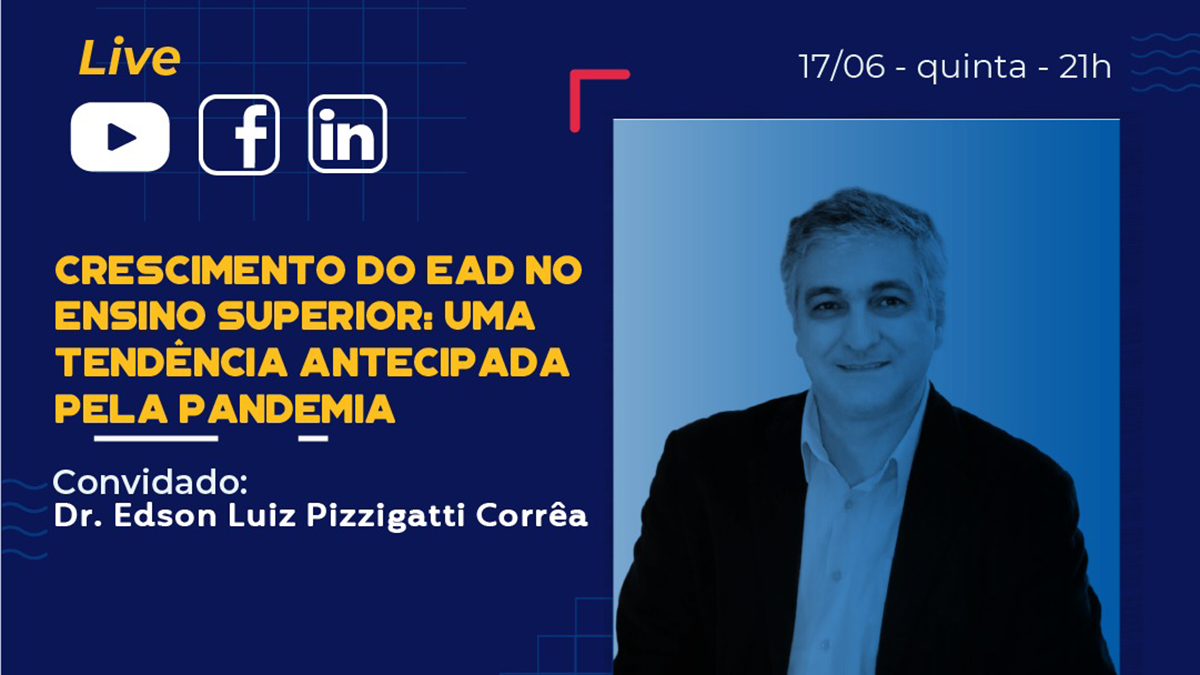 Mediada pela jornalista Sílvia Vinhas, a live trará o Prof. Dr. Edson Luiz Pizzigatti Corrêa, especialista em Mídia, Ambiente, Sociedade e Ensino a Distância; Doutor em Ciências Aplicadas pela Universidade de São Paulo – USP.