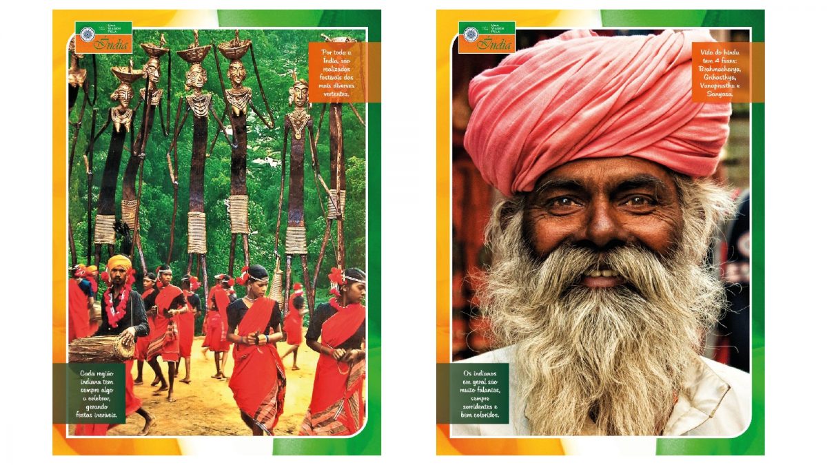 Nos painéis, há a merecida relevância para o Rio Ganges, o principal rio da Índia e um dos 20 maiores do mundo, e o saree (sari), traje tradicional usado por mulheres indianas, entre outras tantas imagens que compõem a diversificada cultura do país localizado no sul da Ásia, um dos mais populosos do mundo, com mais de 1 bilhão de habitantes.