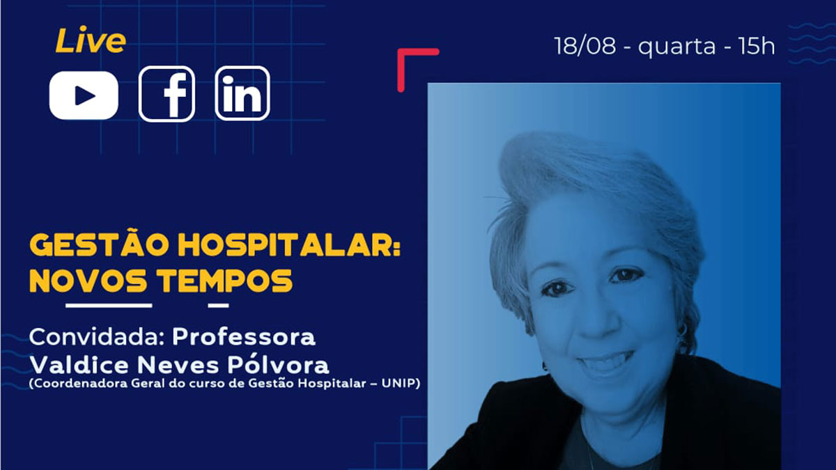Pensando na importância do assunto e em trazer informações sobre uma profissão tão importante e ao mesmo tempo específica, as redes sociais da UNIP promovem, em 18 de agosto, às 15h, a live “Gestão Hospitalar: Novos Tempos”.