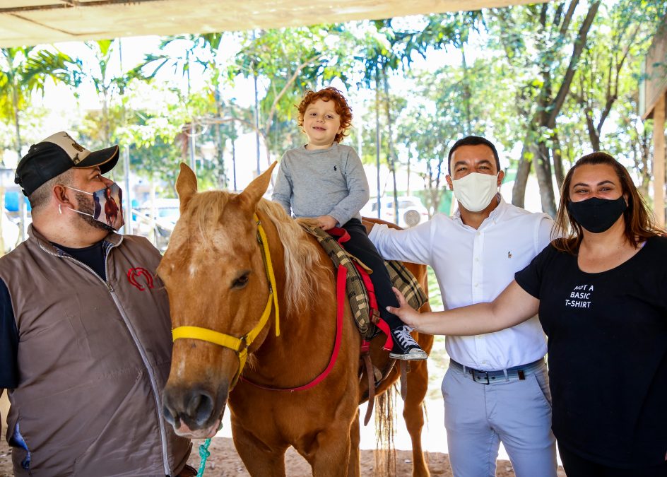 Gislaine Moreira de Araújo, mãe do Heitor Araújo Rocha, 10 anos, contou como a equoterapia está ajudando seu filho que tem Transtorno do Espectro do Autista: “tem ajudado na parte da irritabilidade, na postura, na afetividade e na socialização. Ficamos mais de um ano trancados com ele por conta da pandemia e isso deixou ele mais irritado do que ele já era. Agora, com a equoterapia, ele está melhorando”, disse.
