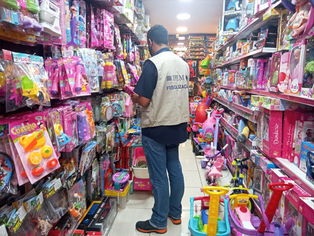 As principais irregularidades encontradas durante a fiscalização foram a falta do selo de identificação da conformidade do Inmetro e informações obrigatórias nos brinquedos, ausência das informações do fornecedor nas luminárias, entre outros.