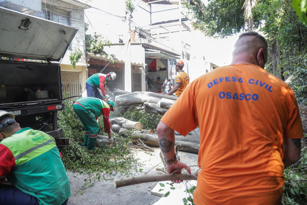 Os serviços executados pelas equipes da Secretaria Municipal de Obras, por exemplo, incluíram a remoção de galhos de árvores, entulho das margens de córregos, desobstrução de bueiros, varrição e limpeza de pontos mais afetados. Os trabalhos se concentram principalmente nos bairros mais atingidos pelo temporal, como o Centro, Km 18, Km 21 e Quitaúna.