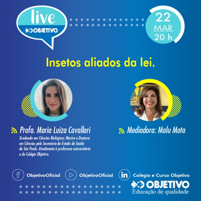 Para falar sobre o assunto, as redes sociais do Objetivo promovem em 22 de março, às 20 h, a live “Insetos aliados da lei”.