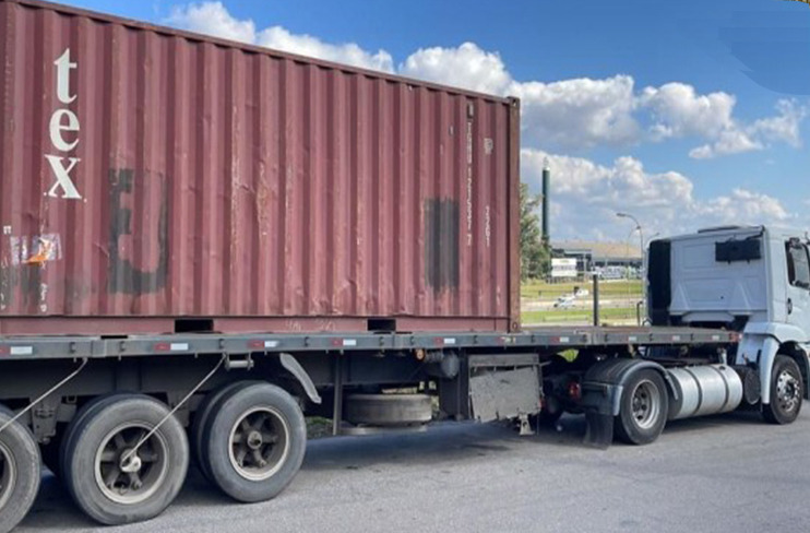 A equipe recebeu dados sobre o deslocamento de uma carga de cobre, possivelmente roubada, 40 quilômetros fora do itinerário. O material era transportado em um caminhão e estava escondido dentro do contâiner.