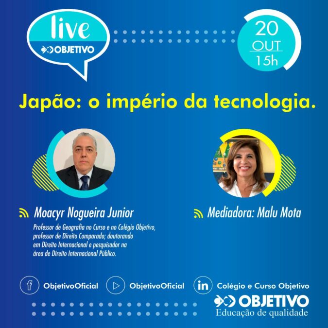 Para falar sobre assunto tão importante ao vestibulando, reforçar o conteúdo e sanar dúvidas, as redes sociais do Objetivo realizam a live “Japão: o império da tecnologia”.