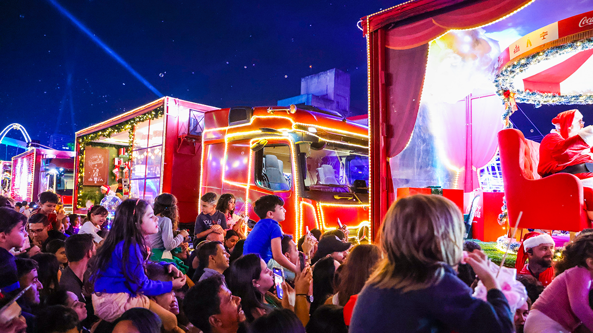 A caravana da Coca-Cola vai passar por 67 cidades brasileiras. Ela está nas ruas desde o dia 3 de novembro e só vai encerrar o tour no dia 23 de dezembro. A comitiva tem 22 pessoas, incluindo os sete motoristas (cinco homens e duas mulheres) que se revezam ao volante.