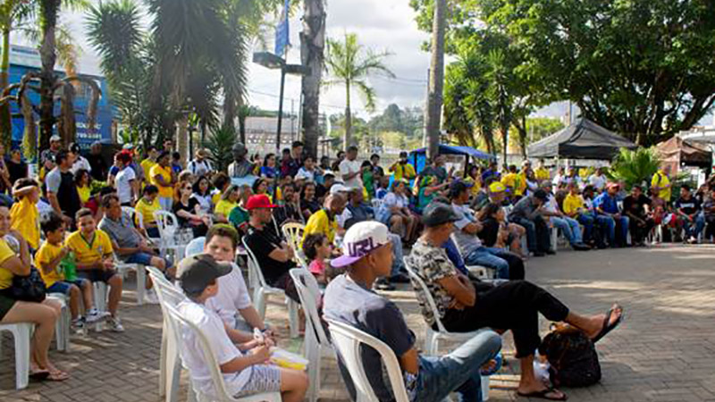 Em edição especial, os munícipes estão acompanhando a seleção brasileira com telão, pipoca, vuvuzelas, bandeiras e muita torcida.
