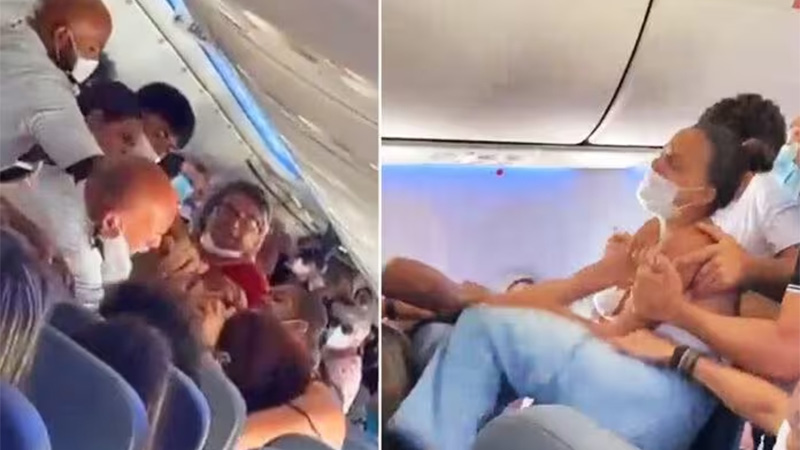 Nas imagens compartilhadas por outros passageiros, é possível ver um grupo de mulheres gritando entre si, dando tapas e puxando o cabelo umas das outras. Em uma das cenas, uma delas se atira na fileira traseira para puxar o cabelo de outra mulher.