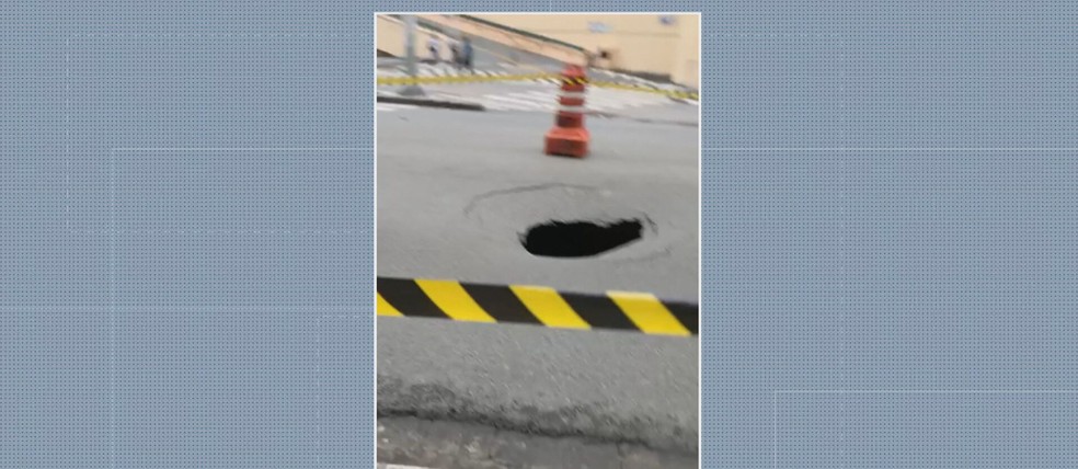 O asfalto do local ficou oco e cedeu. Em nota, a prefeitura informou que “o local está interditado e as equipes da Secretaria de Serviços e Obras estarão no local a partir das 7h para investigar se é uma galeria municipal ou da Sabesp”.