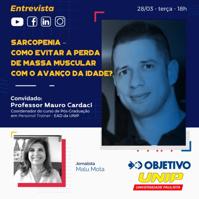 “Sarcopenia – como evitar a perda de massa muscular com o avanço da idade?” é tema de entrevista realizada pela jornalista Malu Mota – apresentadora do programa Duas na Tri, da rádio Trianon – com o Prof. Mauro Cardaci, coordenador do curso de Pós-graduação em Personal Trainer – EAD da UNIP.