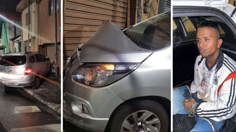 O motorista que dirigia o veículo roubado saiu acelerou em direção à rua Jacinto José de Souza, colidindo com o muro de uma residência. Quando a viatura chegou ao local, o condutor já havia corrido para vielas próximas.