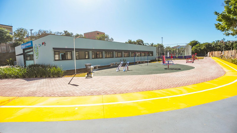 Os serviços da Praça da Cidadania se distribuirão em um amplo terreno de 4.077 m² e incluem quadra poliesportiva com arquibancadas, academia ao ar livre, playground, pista de caminhada e área de jogos.