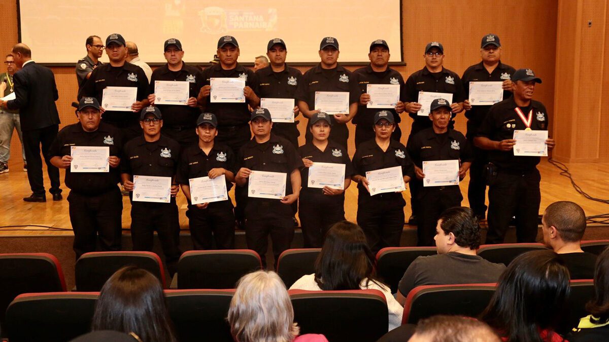 O auditório do Centro Administrativo Bandeirantes (CAB), da Prefeitura de Santana de Parnaíba, sediou, na última sexta-feira (29/09), a cerimônia de encerramento referente ao 2º Estágio Internacional de Segurança Cidadã entre a Delegação Peruana e a Guarda Civil Municipal (GCM). A solenidade contou com a entrega de certificados alusivos ao curso, com carga horária de 100 horas, e reuniu no Paço Municipal autoridades locais, instrutores da GCM, além dos policiais da Guarda Municipal de Lima/Peru.