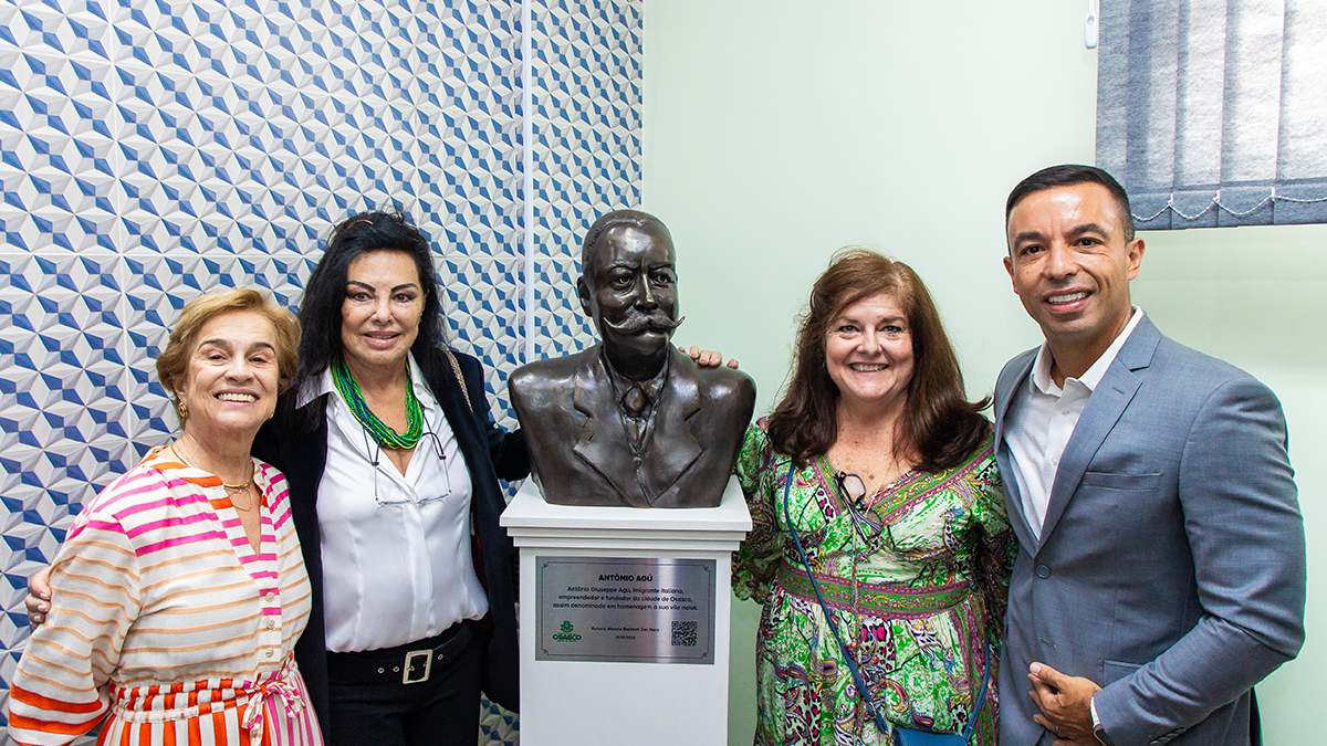 A Prefeitura de Osasco realizou quarta-feira, 25/10, a cerimônia de entronização do busto do imigrante italiano, empreendedor e fundador da cidade de Osasco, Antônio Agú, no hall de entrada do Paço Municipal. A solenidade, realizada na data em que ele comemoraria 169 anos, foi um momento de resgate histórico, e contou com as presenças do prefeito Rogério Lins, da vice-prefeita, Ana Maria Rossi, familiares do homenageado e a artista plástica autora da obra, Márcia Baldrati Del Nero.