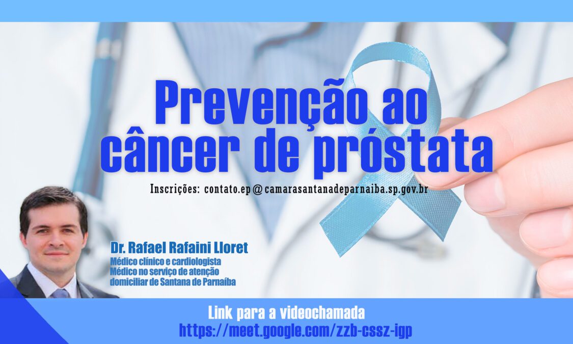Novembro Azul é uma campanha de conscientização realizada por diversas entidades no mês de novembro dirigida à sociedade e, em especial, aos homens, para conscientização a respeito de doenças masculinas, com ênfase na prevenção e no diagnóstico precoce do câncer de próstata. Com esse objetivo, a Escola do Parlamento da Câmara Municipal de Santana de Parnaíba realiza na próxima quinta-feira, 16, a partir das 9h30, por meio da plataforma digital do Google Meet, palestra ministrada pelo Dr. Rafael Rafaini Lloret, médico clínico e cardiologista do serviço de atenção domiciliar de Santana de Parnaíba.