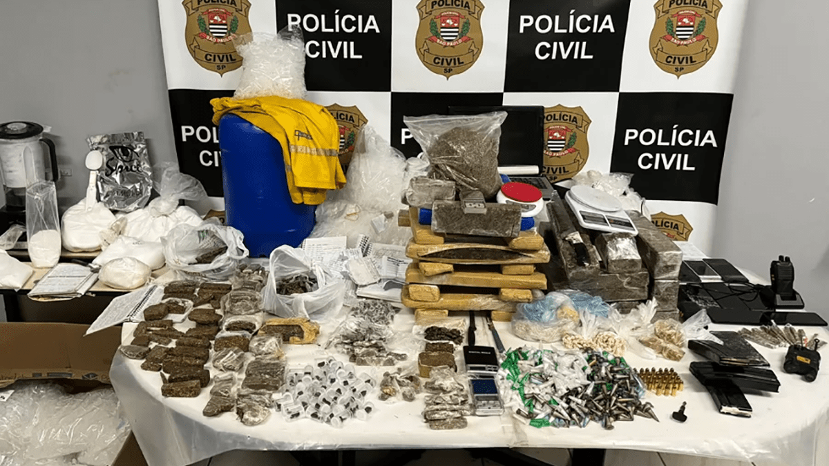 Com ele, havia porções de drogas, anotações de contabilidade do tráfico, 11 celulares, rádios comunicadores, dinheiro e acessório de arma de fogo de uso restrito das forças armadas. O homem foi preso por tráfico de drogas e associação criminosa.