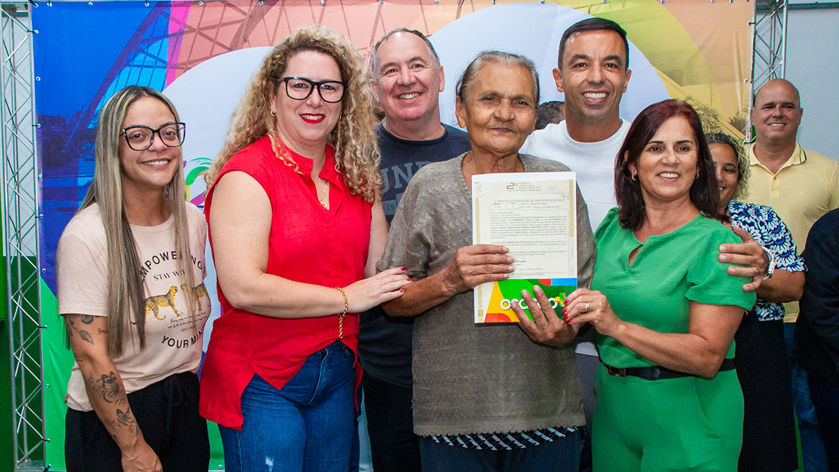 “Eu morava na Vila São José e naquela época chegou um momento que não tínhamos mais como pagar um aluguel. Aí tivemos que montar um barraco na área e lá estamos até hoje”, conta Ester, que tem 3 filhos, 4 netos e 3 bisnetos. “Também não consegui mais pagar aluguel e tive que me mudar para lá. Na época eu tinha 6 filhas pequenas. Nem sempre tinha emprego e houve um tempo em que até ia pedir alimento na porta das casas para não passar fome. Hoje é só gratidão e alívio por saber que agora meu terreno está regularizado”, completou Judite. Ao final da cerimônia o prefeito e o secretário entregaram títulos às demais famílias.