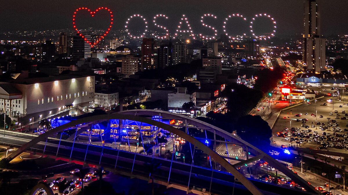Para celebrar os 62 anos de emancipação político-administrativa de Osasco, a Prefeitura promoveu na noite de segunda-feira, 19/02, no Boulevard em frente ao Viaduto Metálico, uma apresentação de drones que coloriu o céu da cidade.