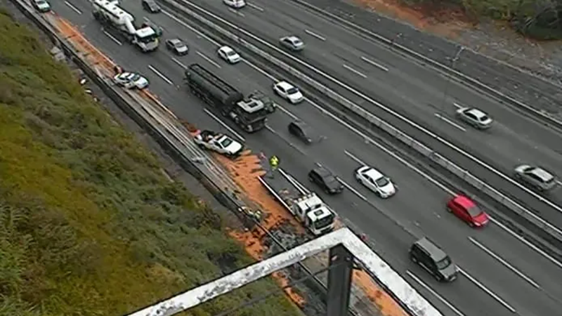 Segundo informações iniciais, a carreta carregada com 12 toneladas de fermento biológico apresentou problemas mecânicos. O outro caminhão que vinha à frente trazia 13 toneladas de argamassa.