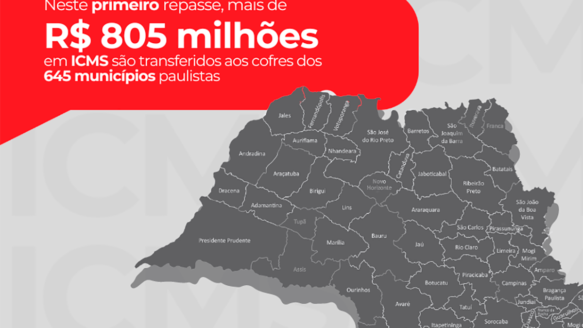 Neste oitavo mês de 2024, o Governo do Estado de São Paulo deve repassar às prefeituras mais de R$ 3,4 bilhões em recursos do ICMS em quatro depósitos ao longo das semanas.