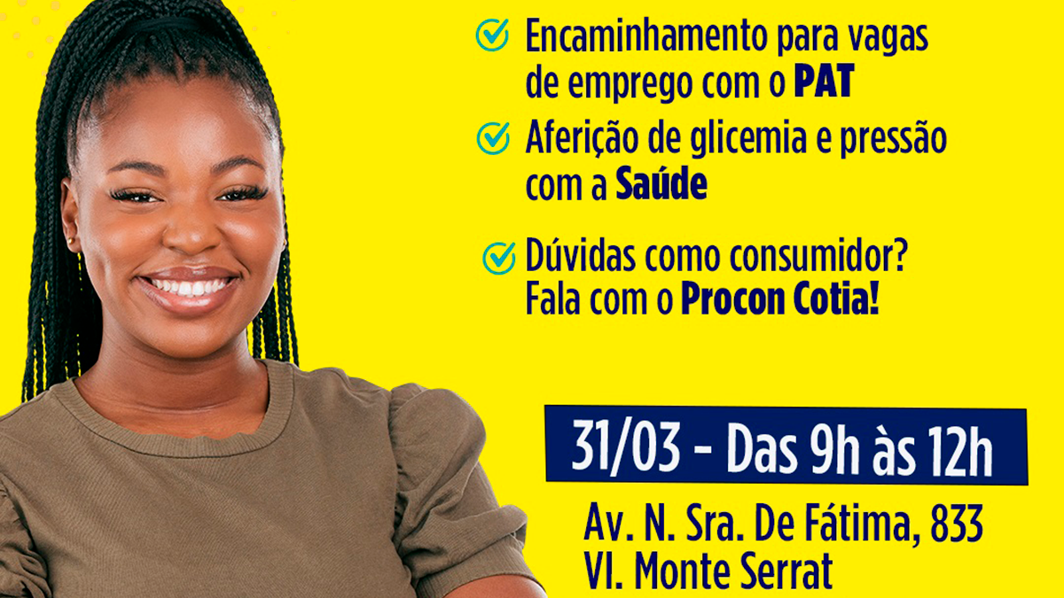 Encaminhamento para vaga de emprego, por meio do Posto de Atendimento ao Trabalhador (PAT), aferição de pressão arterial e glicemia, atendimento com o Procon. Estes são os serviços que a Prefeitura de Cotia vai disponibilizar para a população gratuitamente no dia 31 de março de 2025, das 9h às 12h, no Coworking Municipal, localizado no Poupa Shopping.