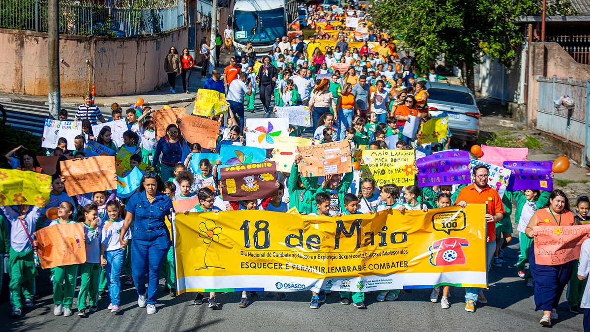 Em alusão ao Dia Nacional de Combate ao Abuso e à Exploração Sexual contra Crianças e Adolescentes, celebrado no próximo 18 de maio, a Prefeitura de Osasco, por meio da Secretaria de Assistência Social, realizou na manhã de quarta-feira, 15, a Caminhada Maio Laranja. A atividade contou com a participação do secretário de Assistência Social, José Carlos Vido, seu adjunto, Daniel Matias, e o secretário Executivo da Infância e Juventude, David Arantes da Silva, além de vereadores, alunos da rede municipal, associações e frequentadores dos CRAS Rochdale, Munhoz, Piratininga e Bonança, e o público em geral.