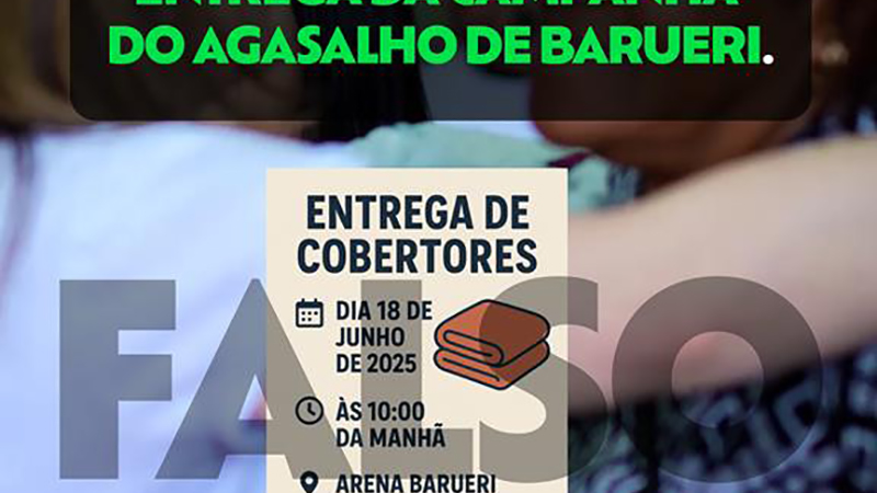 A notícia falsa aproveita-se da mobilização da sociedade barueriense em torno da atual Campanha do Agasalho “Tudo Novo”, liderada pelo Fundo Social de Solidariedade e pela Secretaria de Assistência e Desenvolvimento Social de Barueri, para causar desinformação, tumultos ou obter outros objetivos desonestos.