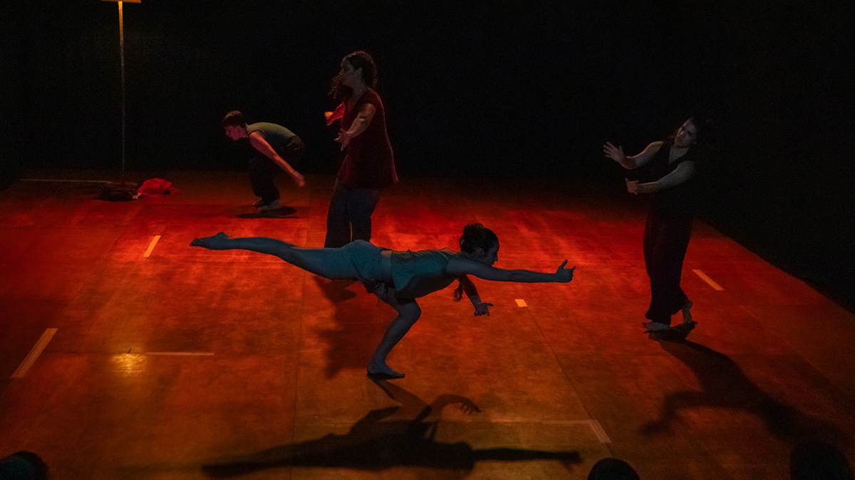 “Estudos para aproximar o sonho ao chão” é uma criação sobre dança e em dança onde quatro dançarinas exploram suas histórias de corpo e imaginários, tanto individuais quanto coletivos. Em cena diante de improvisações previamente estruturadas, elas experimentam uma dramaturgia sem a lógica de início, meio e fim, permitindo que o sonho se torne uma realidade compartilhada. São corpos que, ao dançarem juntos, transcendem o fim iminente e cultivam novos começos, tendo um espaço-tempo coletivo em que uma parte de cada dançarina atravessa e conecta todas as outras.