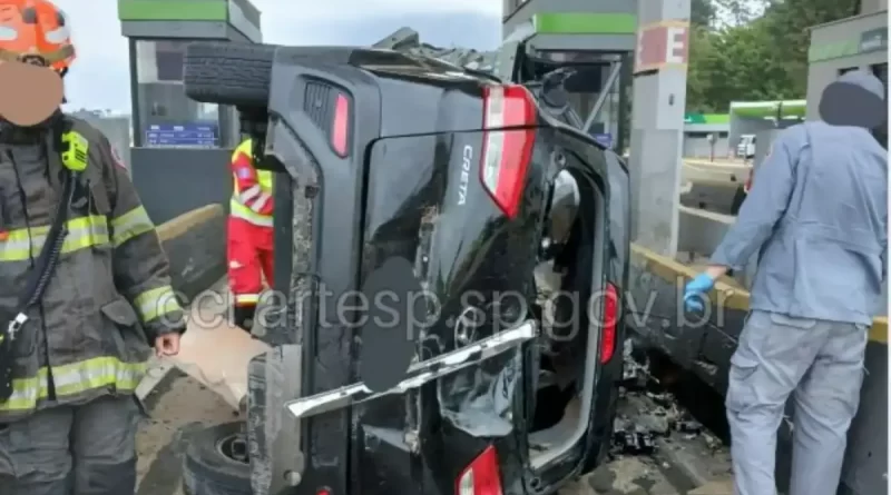 De acordo com os dados apurados no local pela concessionária Raposo Castello, que administra o trecho, o condutor de um automóvel modelo Creta trafegava pela faixa 8 da praça de pedágio quando perdeu o controle da direção. Em seguida, o veículo invadiu a pista da cabine, chocou-se violentamente contra a estrutura de concreto da ilha de proteção e tombou logo à frente.