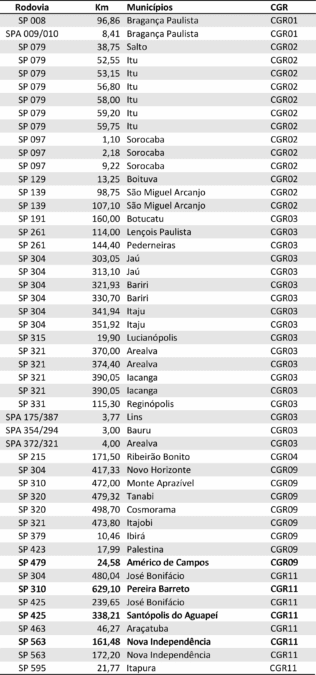 Confira a localização dos radares por Coordenadorias Gerais Regionais (CGRs) do DER-SP: