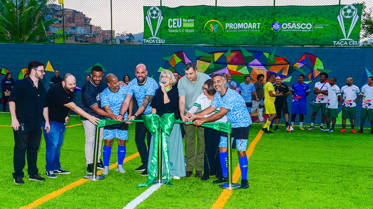 A Prefeitura de Osasco entregou no sábado, 16/8, a revitalização completa do Campo Society do CEU das Artes e Esportes Unificados Yolanda Apparecida Avelino Ribeiro, localizado no Jardim Bonança. O espaço passou por uma ampla reestruturação, com instalação de gramado sintético, construção de muro de contenção, implantação de sistema de drenagem e demais melhorias que garantem mais conforto, acessibilidade e segurança para os frequentadores.