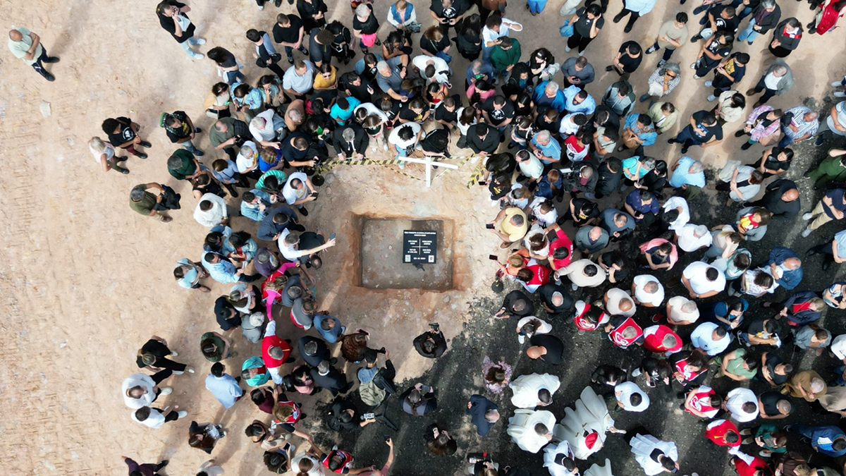 Já a pedra depositada na terra foi preparada especialmente para o momento histórico. Nela está cravado o chamado “Exorcismo de Santo Antônio”, com os dizeres: “Eis a cruz do senhor! Fugi forças Inimigas! Venceu o Leão de Judá, a raiz de Davi. Aleluia” e a data de 24 de agosto de 2025.