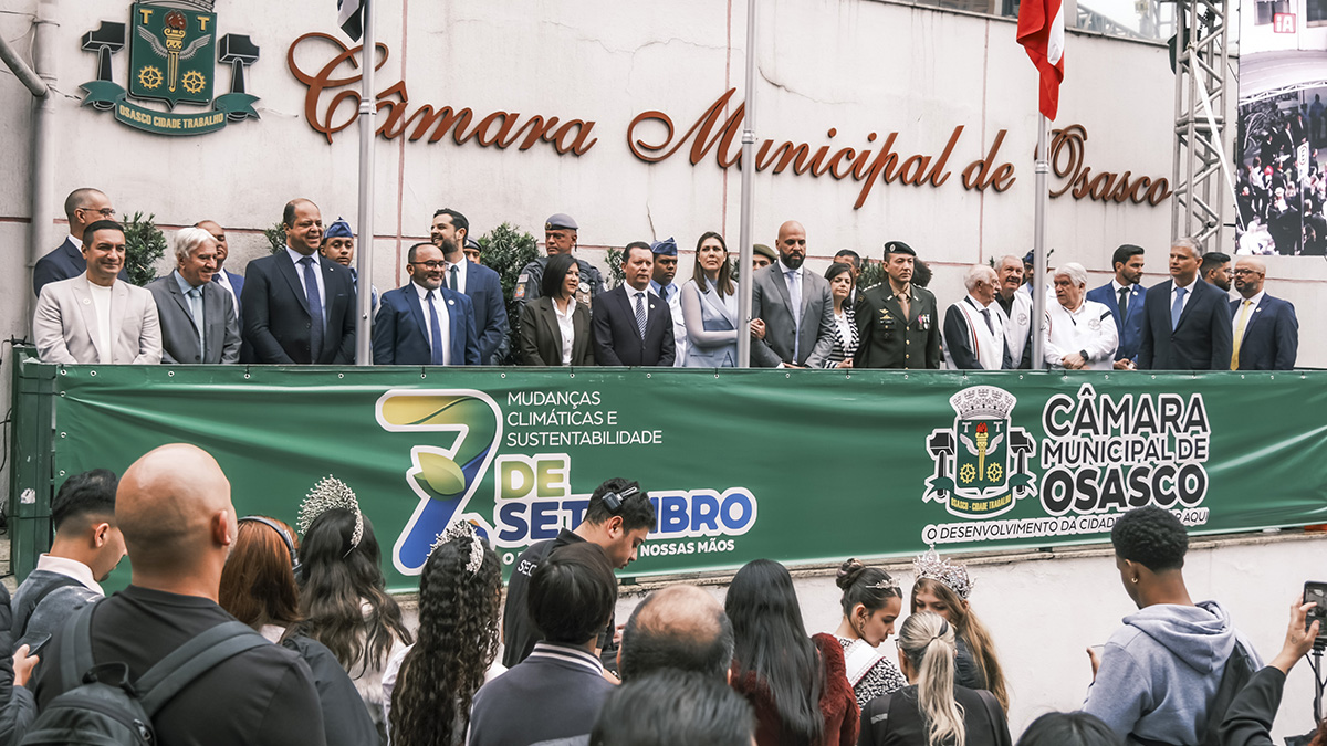 Após a execução dos hinos do Brasil e de Osasco, as autoridades presentes, acompanhadas por secretários municipais, ex-vereadores, membros das forças de segurança e pelas princesas mirins osasquenses, dirigiram-se ao palco do desfile cívico e militar, organizado pela Secretaria de Educação. Neste ano, o tema foi “Mudanças Climáticas e Sustentabilidade – o Futuro Está em Nossas Mãos”, reforçando a importância da conscientização ambiental e da formação cidadã.