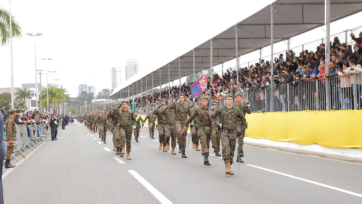 Em seguida, desfilaram as forças de segurança: Exército Brasileiro, 5º Batalhão de Ações Especiais da Polícia Militar, divisões da Guarda Civil Municipal (GCM), 18º Grupamento de Bombeiros, agentes da Secretaria de Mobilidade Urbana (Semurb) e Defesa Civil.