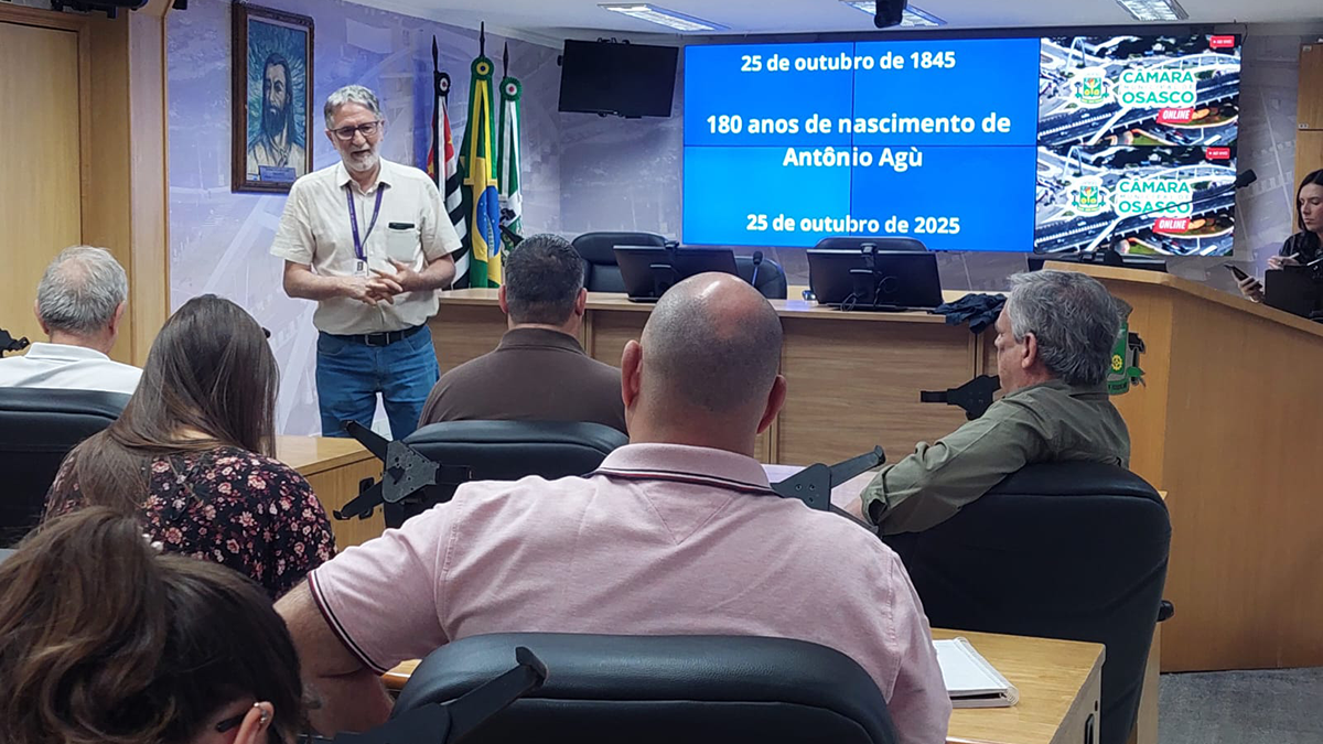 Na manhã desta quarta-feira (10), no Plenário Tiradentes, a Frente Parlamentar Nossa História reuniu-se com representantes e voluntários para definir as ações em comemoração aos 180 anos de nascimento de Antônio Agù, considerado o fundador da vila que deu origem à cidade de Osasco.