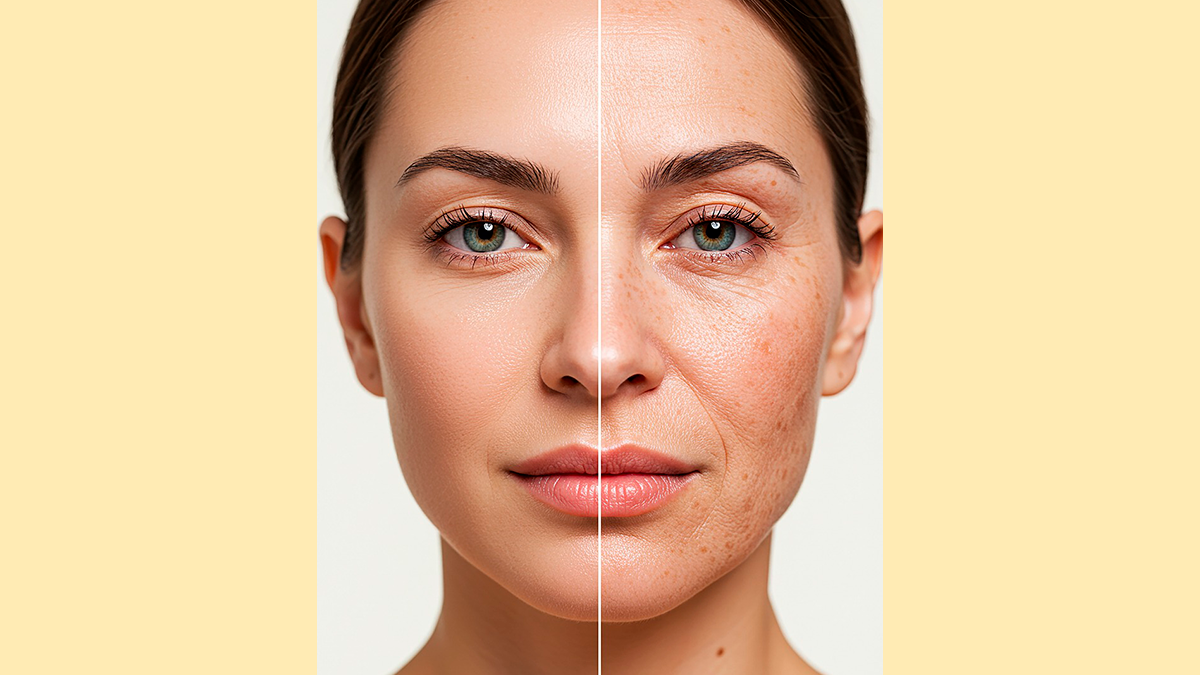 - Exposição solar sem proteção: A radiação ultravioleta (UV) é a principal causa do envelhecimento precoce, danificando fibras de colágeno e elastina.