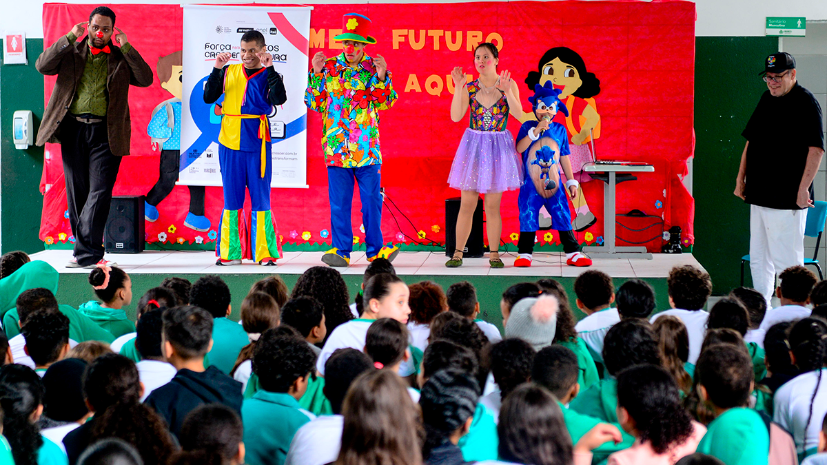 A manhã desta segunda-feira (3) foi marcada por emoção e alegria na EMEF Victor Brecheret, no Baronesa. Mais de 600 alunos, distribuídos em 16 turmas, assistiram a duas apresentações do espetáculo “Circo Pinguins”, que uniu arte, sensibilidade e inclusão em uma experiência inesquecível.