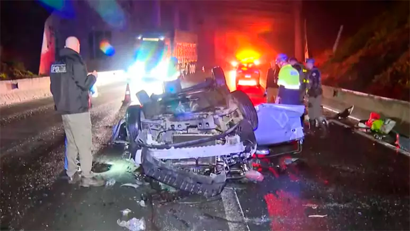 O veículo caiu capotado e um segundo carro, ao tentar desviar do acidente, atropelou uma das vítimas, arrastando o corpo por cerca de dez metros.
